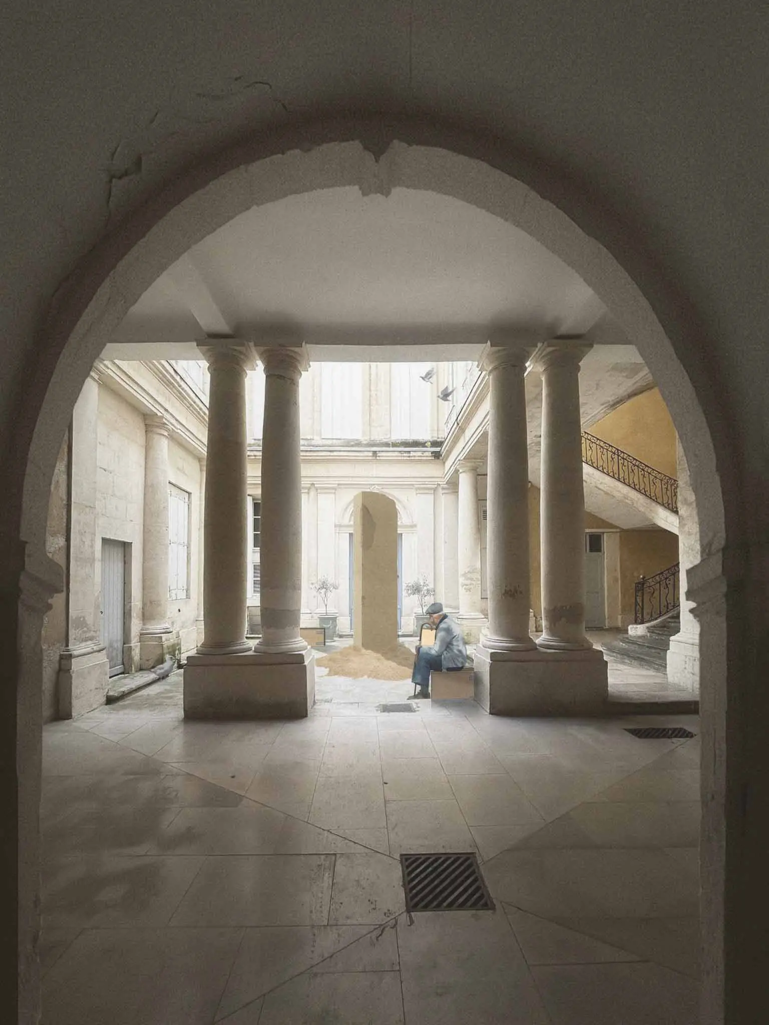 Forme pure érigée vers le ciel, elle est construite comme un monument fait pour durer. À l’inverse, sa matérialité dénonce sa fragilité et son inexorable chute.